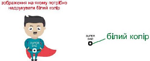 - роздільна здатність зображення в файлі має бути 100-600 dpi, залежно від лінійних розмірів виробу: Друк білим кольором