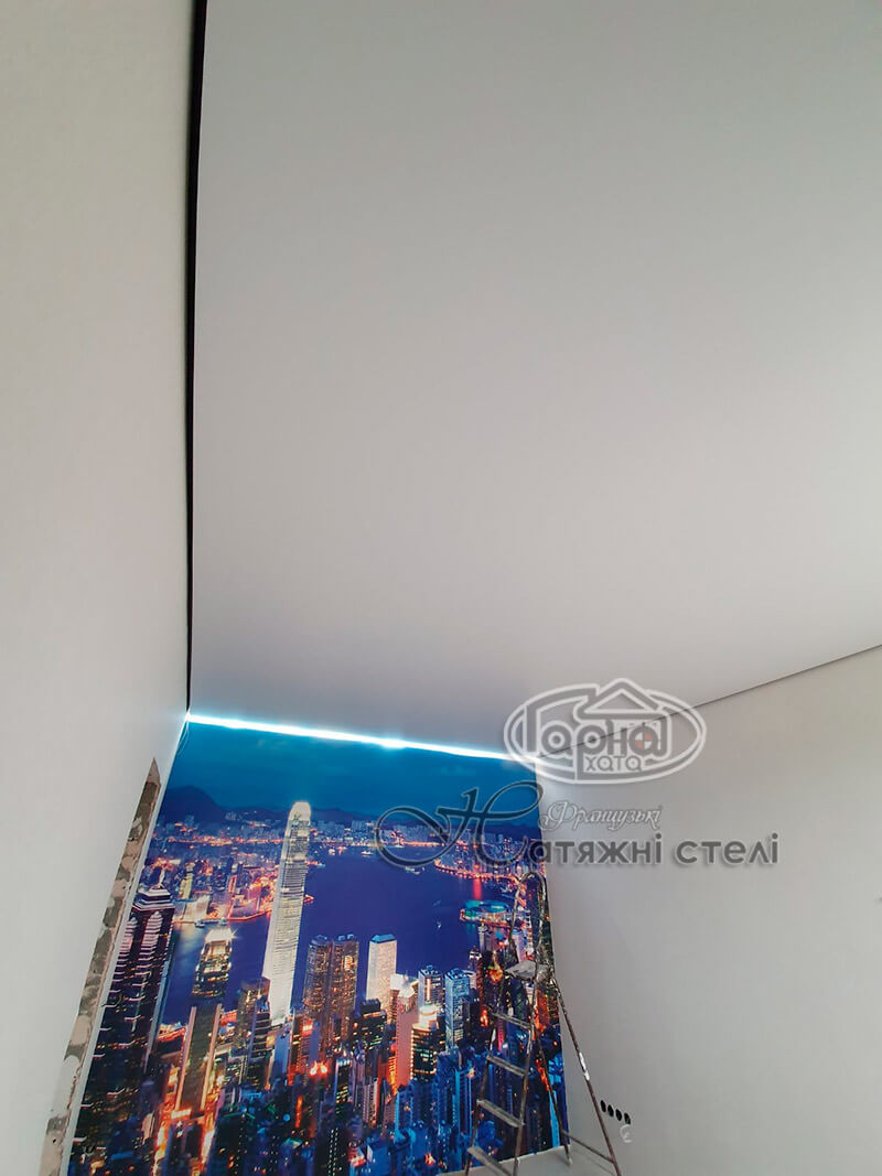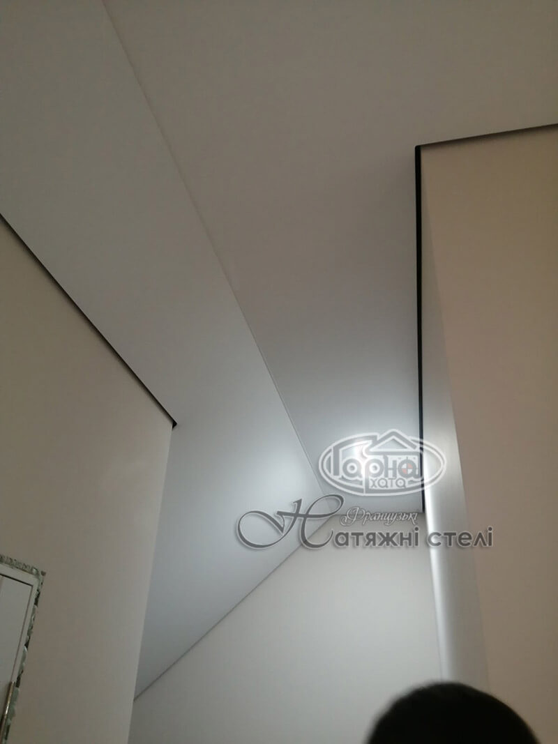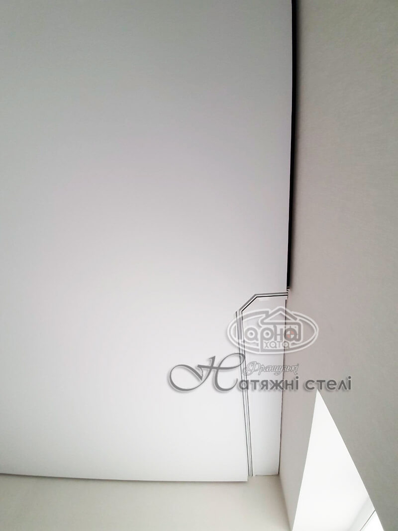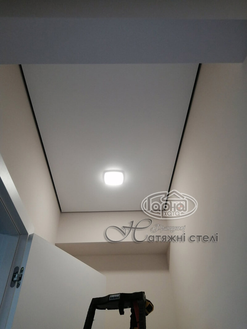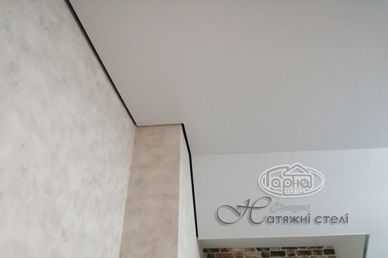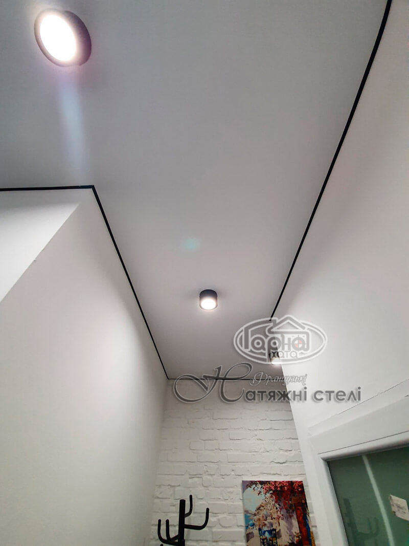 Натяжні стелі на тіньовий парящий профіль ГХ1. Білого та чорного кольору.