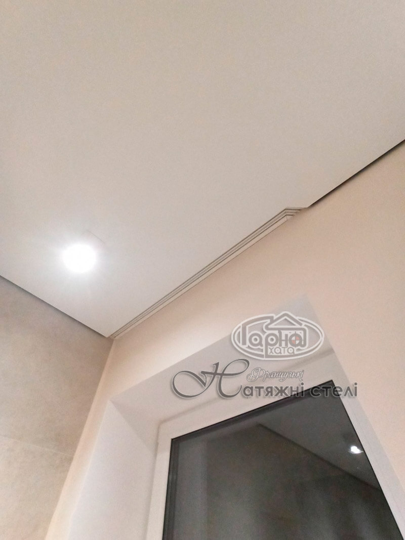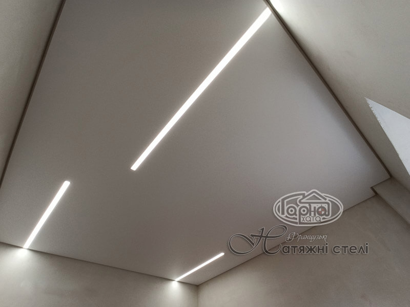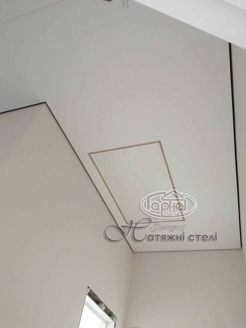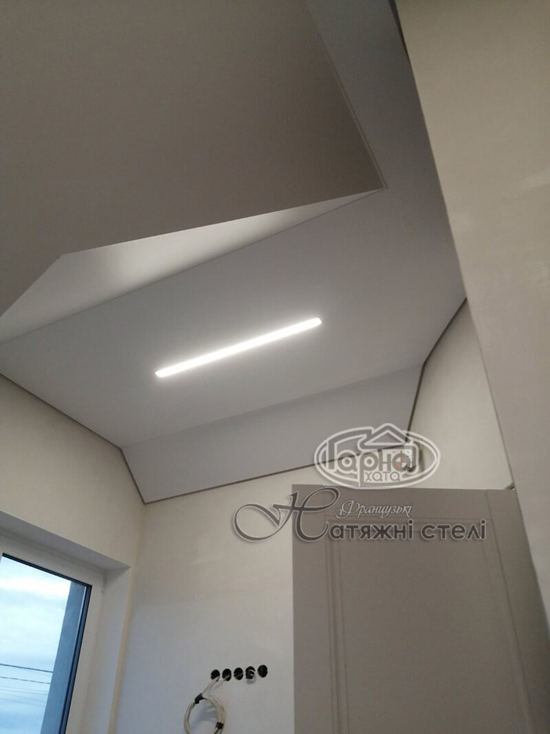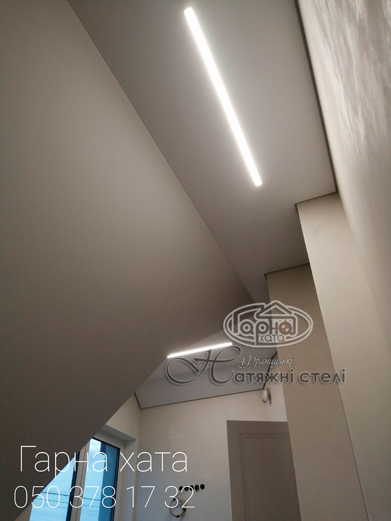 Натяжні стелі на тіньовий парящий профіль ГХ1. Білого та чорного кольору.