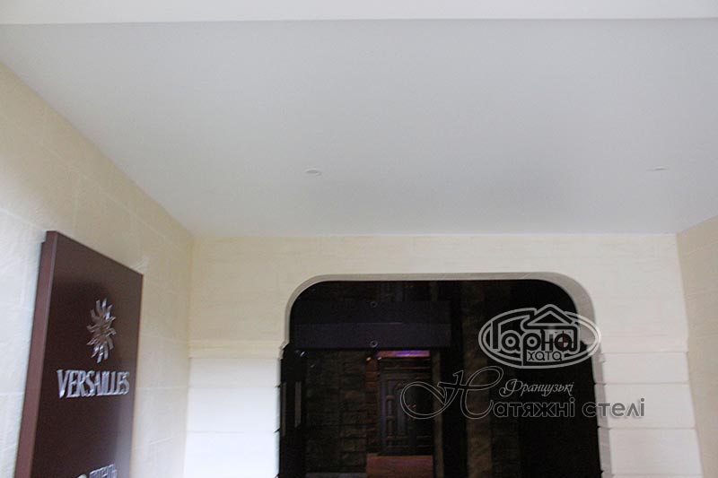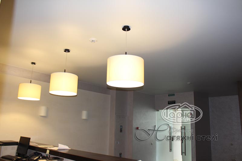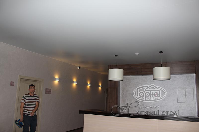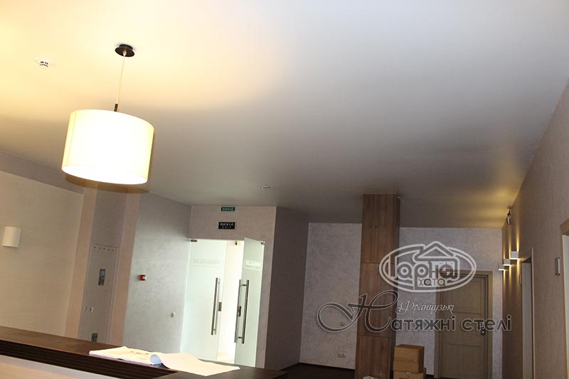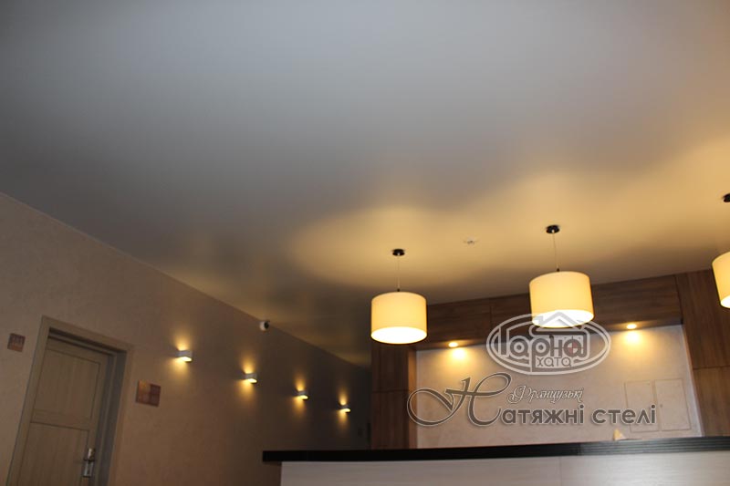 Вони створюють простоту та водночас вишуканість. На рецепції встановлена матова стеля великих габаритів.