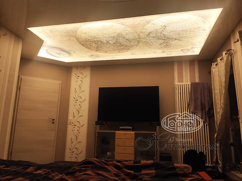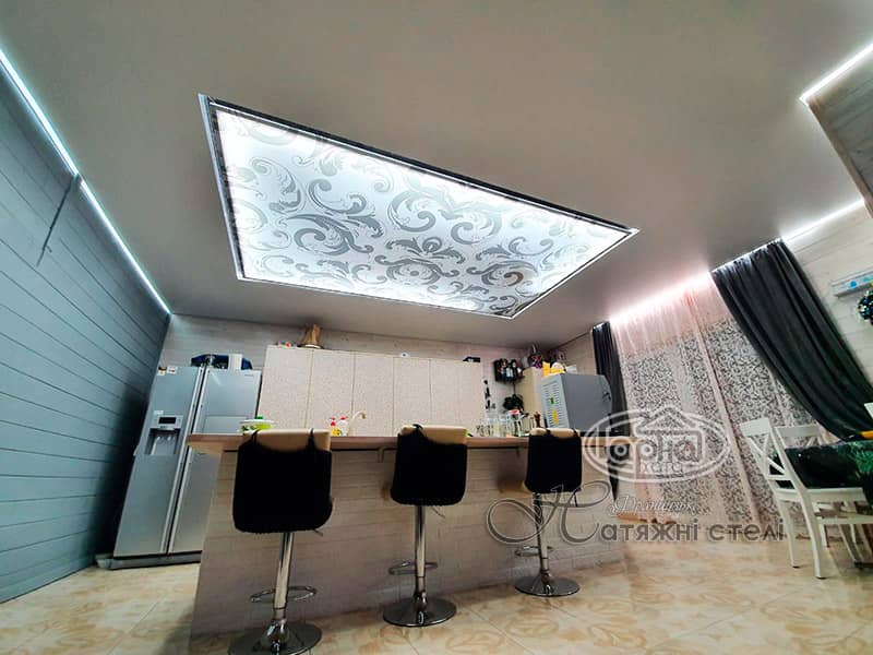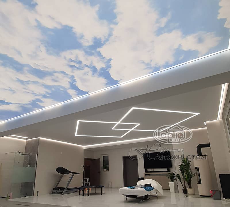 Також дуже ефектно виглядають конструкції з фотодруком і підсвічуванням. Ви можете замовити натяжну стелю з різними малюнками, візерунками і навіть власним фото або зображеннями дітей. Виберіть картинки з каталогу компанії або запропонуйте свій варіант. Головне щоб вихідний малюнок був гідної якості. Ми наносимо його з використанням сучасної технології друку, завдяки чому зображення зберігає свою чіткість, колір і яскравість на довгі роки. Крім того, воно не боїться води, тому натяжну стелю можна очищати від забруднень вологою ганчіркою, не побоюючись, що зображення деформується.