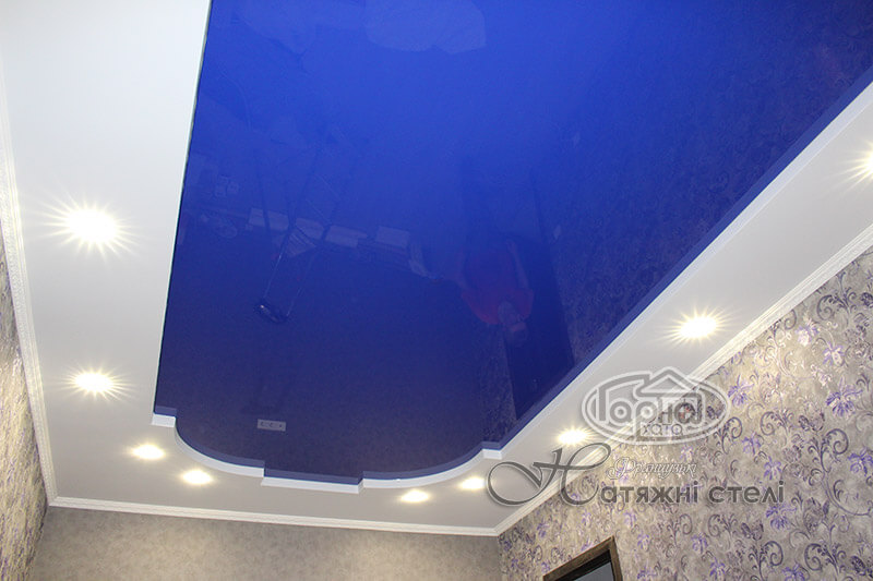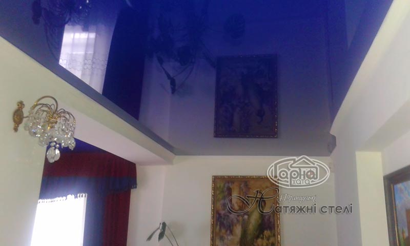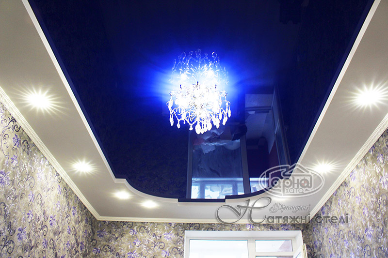 Что же касается формы французского натяжного потолка, то для такого изысканного цвета, как синий, лучше выбирать строгие геометрические фигуры: квадрат или прямоугольник с прямыми или скругленными углами.