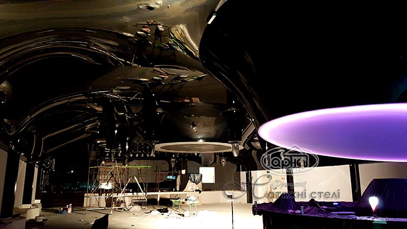 Натяжные потолки 3D с объемными конструкциями позволяют скрыть любые неровности базового потолка (балки, швеллера), а также коммуникации внушительных размеров (короба вентиляции, коробки и системы управления освещением).