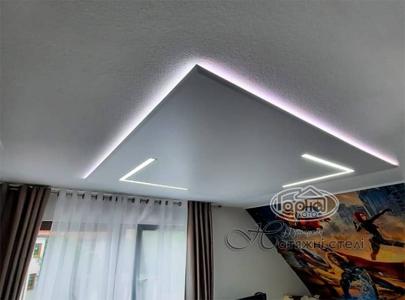 Кроме того, натяжные потолки позволяют легко воплотить в жизнь все пожелания клиента. Они могут быть многоуровневыми, криволинейными и парящими. Также вы можете выбрать глянцевые, матовые или сатиновые варианты с фотопечатью и подсветкой.