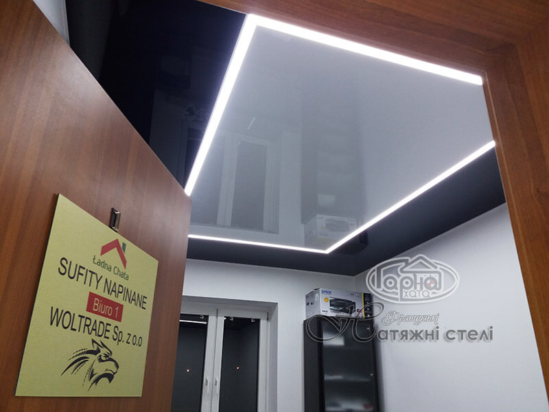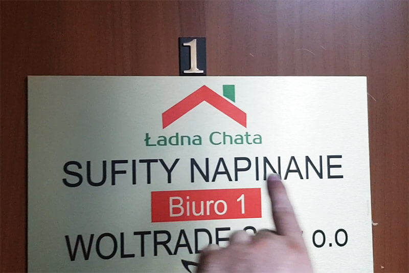 Наш филиал находится в Польше, г. Lublin, Mełgiewska 74, Ładna Chata. Вы можете увидеть натяжной потолок, который смонтирован у нас в офисе.