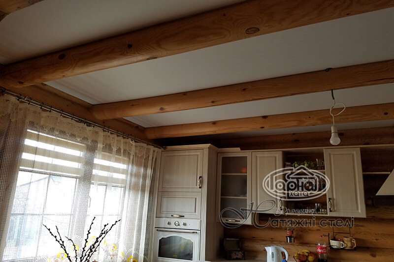 Натяжные потолки в каркасных домах и изготовленных из бруса — наиболее простой способ оформления помещения. Дерево — один из лучших, к тому же натуральных материалов для отделки дома, но оно не лишено недостатков. В частности древесина боится воды и является гигроскопичной. Однако в доме достаточно помещений с повышенным уровнем влажности — кухня, ванна, туалет и иногда бассейн, поэтому об их защите необходимо позаботиться заранее. Для этой цели многие используют натяжные потолки в домах из бруса и каркасных домах. Их популярность объясняется хорошей влагоустойчивостью, которая защищает древесную потолочную поверхность от воздействия конденсата.